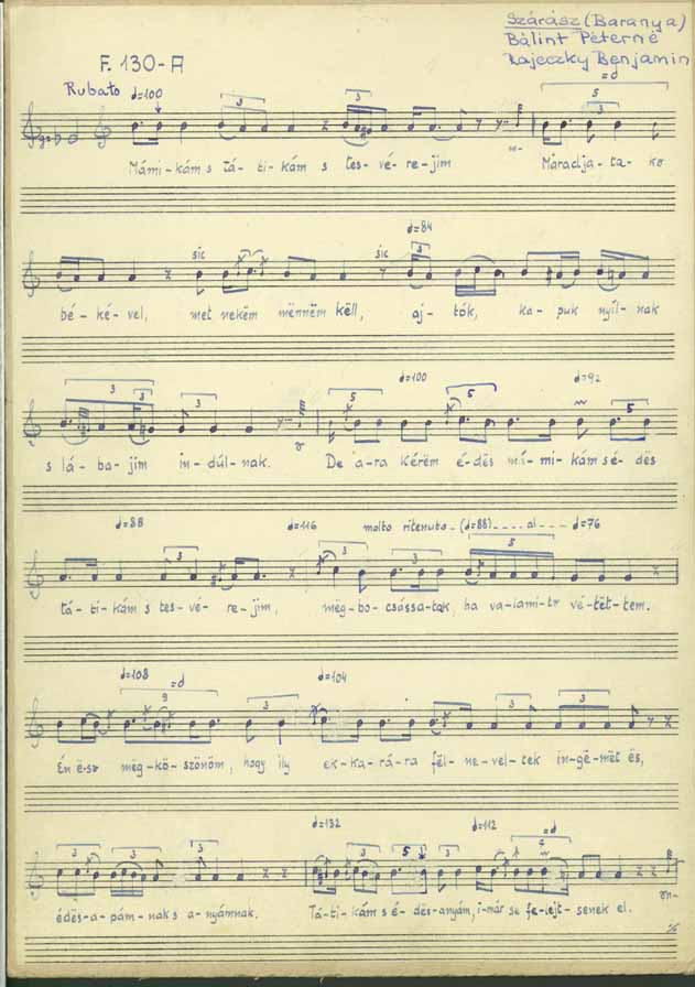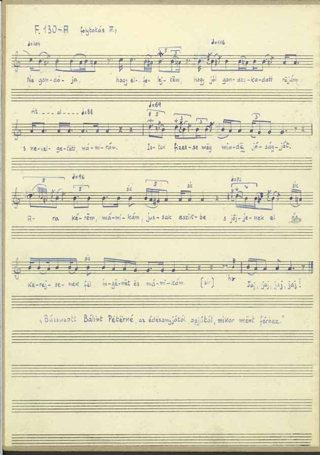 Lajtha megjegyzése: Bálintné szerint a menyasszony is sír, de nem jajgat olyan nagyon,