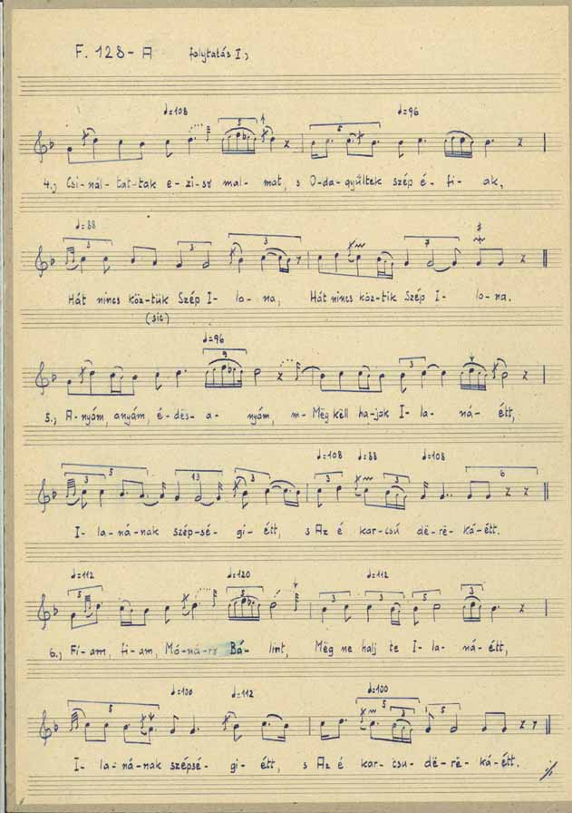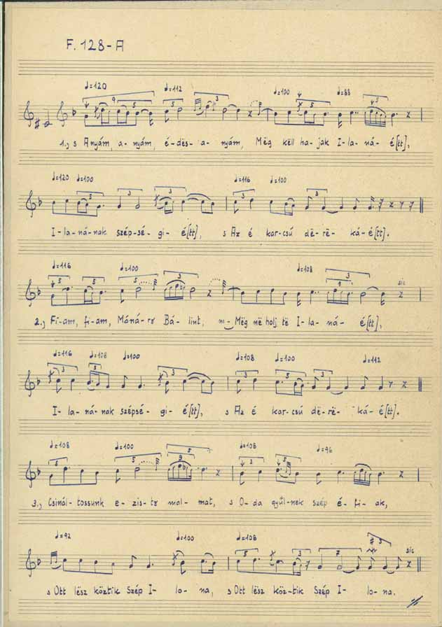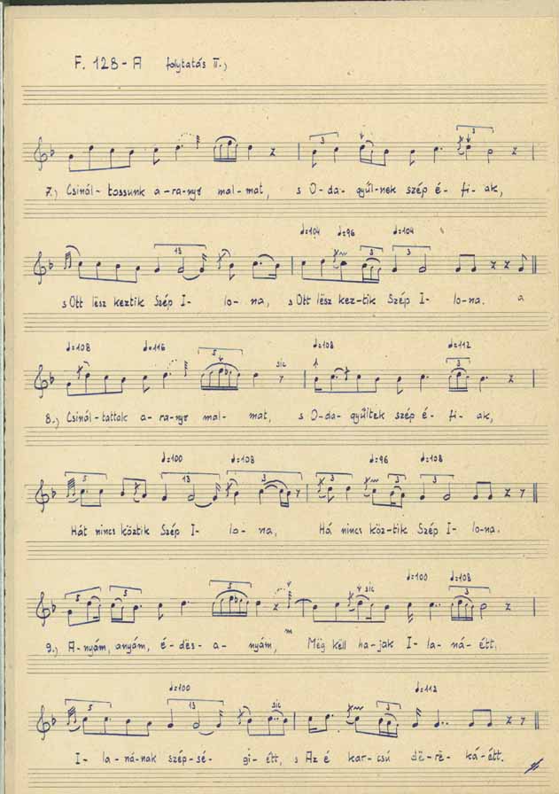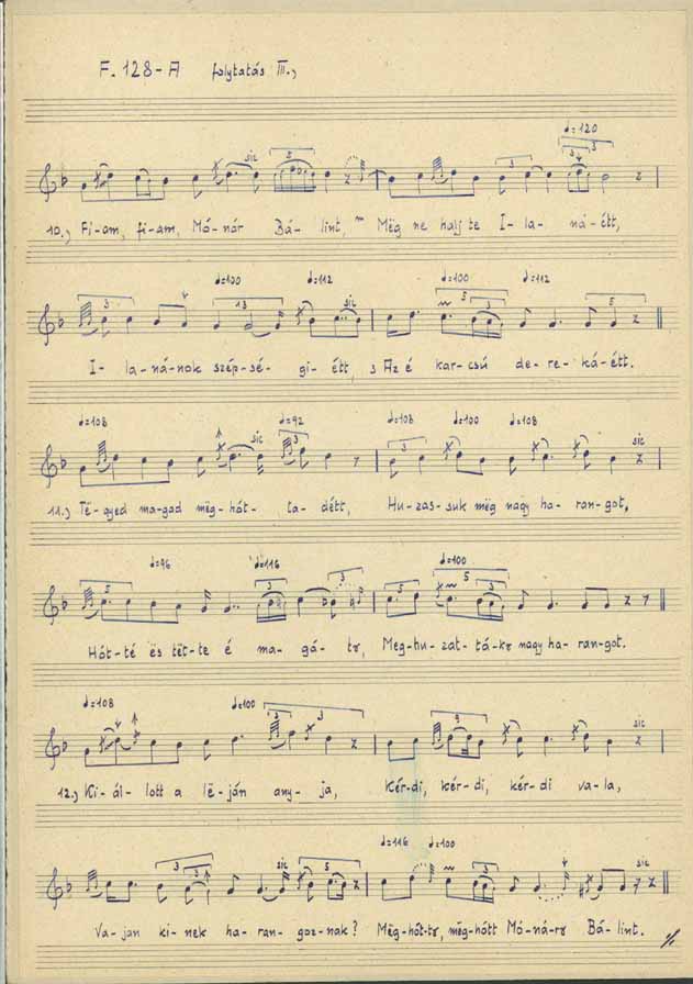 A felvétel alkalmával még a következő szövegeket is énekelte (a kéziratból versszak-beosztás nem látható, ezért folyamatosan közöljük):