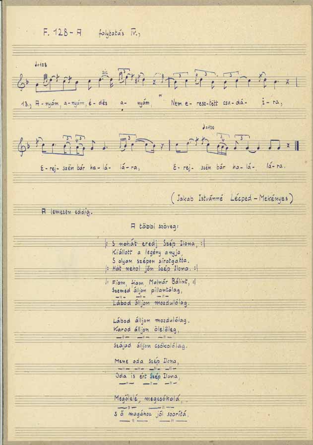 Az s. 38. II. sz. felvételen a következő szöveggel énekelte: